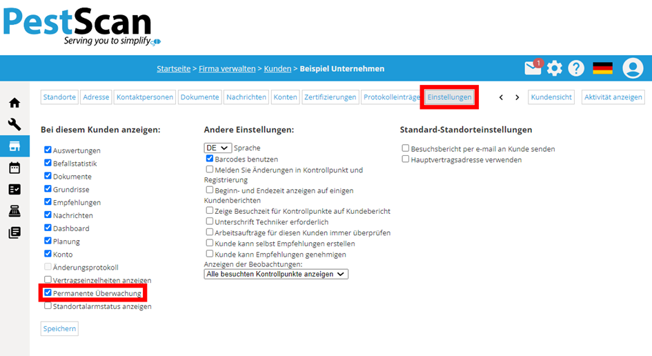 Abbildung 1 Aktivierung Permanente Überwachung beim Kunden