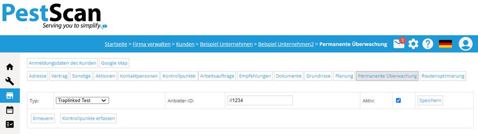 Schritt 5: Verbinden Sie den permanenten Überwachungsstandort in PestScan mit dem Standort Ihres Anbieters