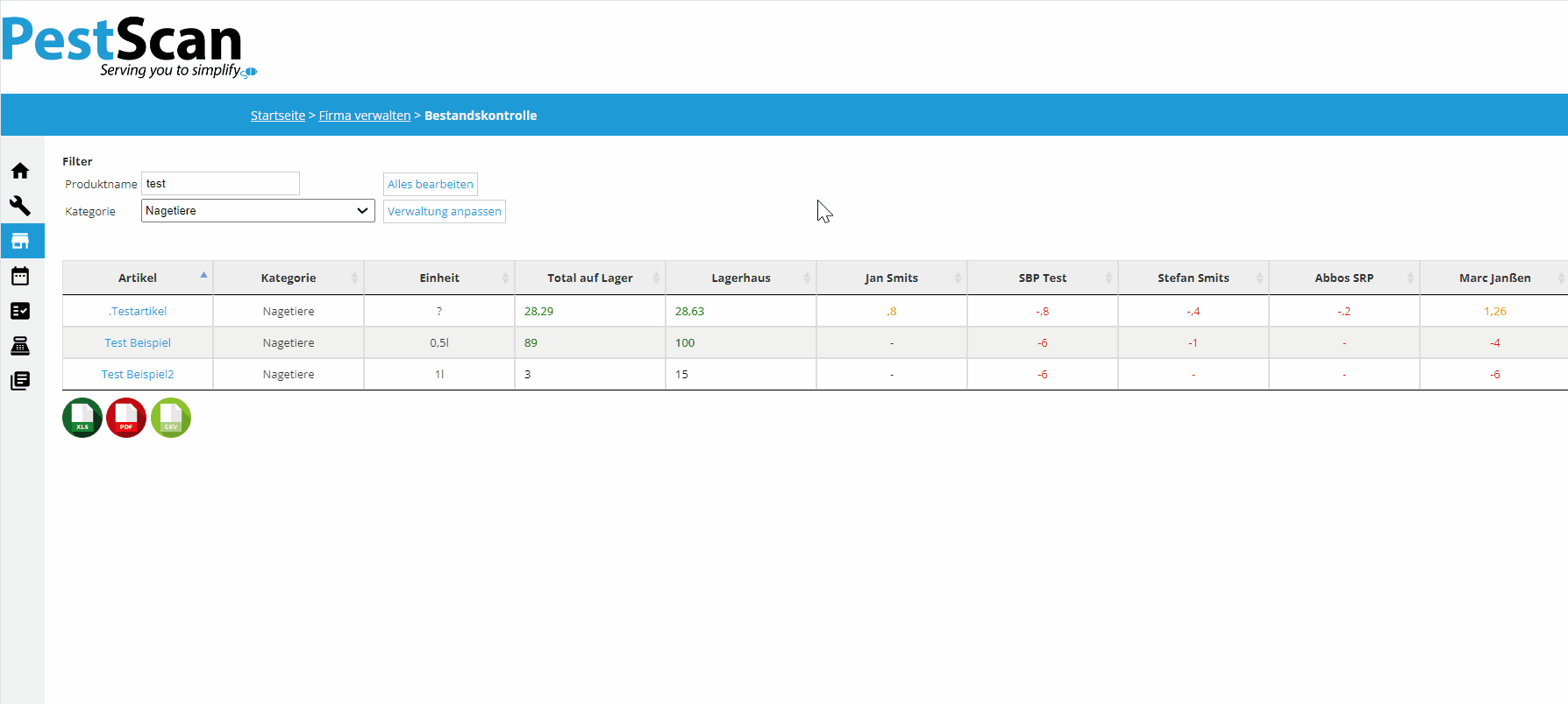 Sie können verschiedene Filter benutzen, um nach bestimmen Kategorien zu schauen oder Sie wählen einen bestimmten Mitarbeiter aus und können so sehen, ob er noch über genügend Artikel verfügt.