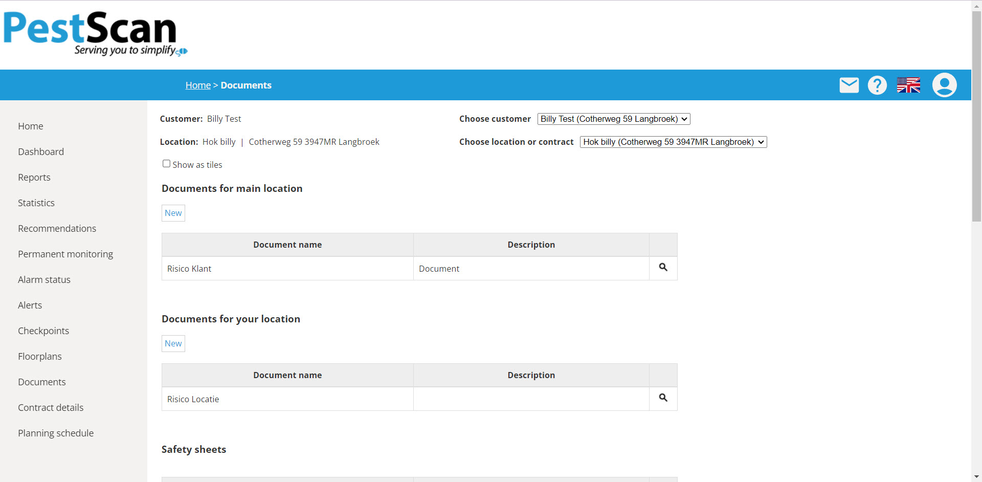 - Documents for the main location: those documents are visible for every sub Location. No matter what location or contract you choose on the welcome screen, you will always see these documents.